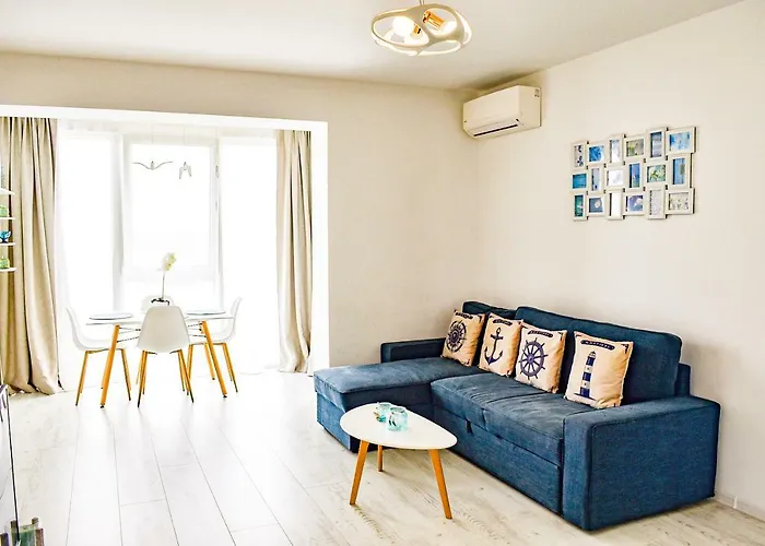 ベッドルーム1室のMediterranean Style Apartment ティミショアラは都市の景色を見渡せる場所にあり、Centrul Crestin Aletheiaから歩いて5分以内の場所にあります。 この60m²のアパートには中庭の景色を望むテラスがあります。